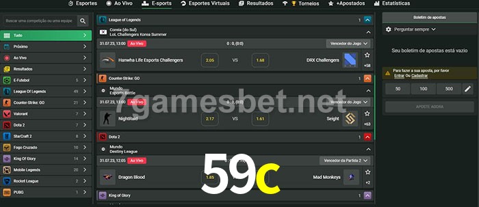 O 59c oferece uma grande seleção de opções de apostas em e-sports com probabilidades competitivas